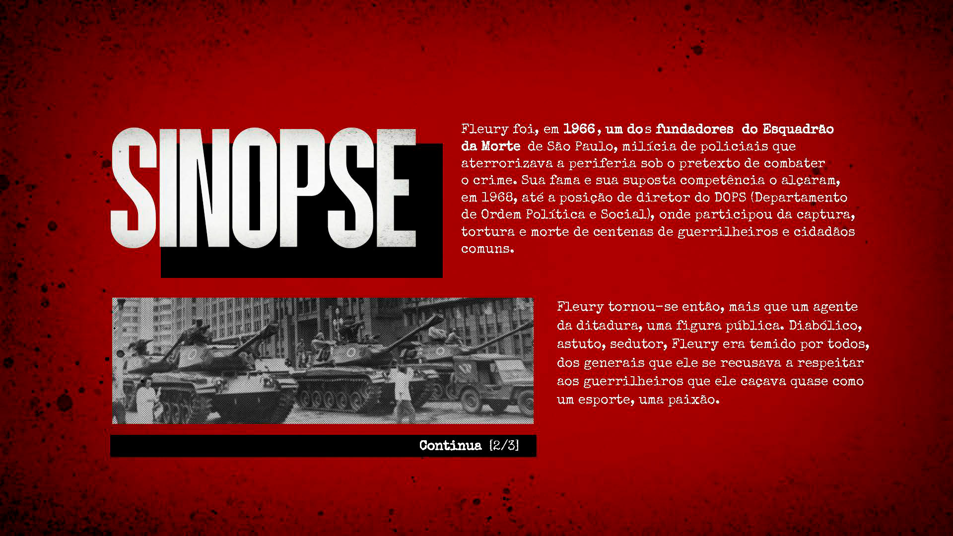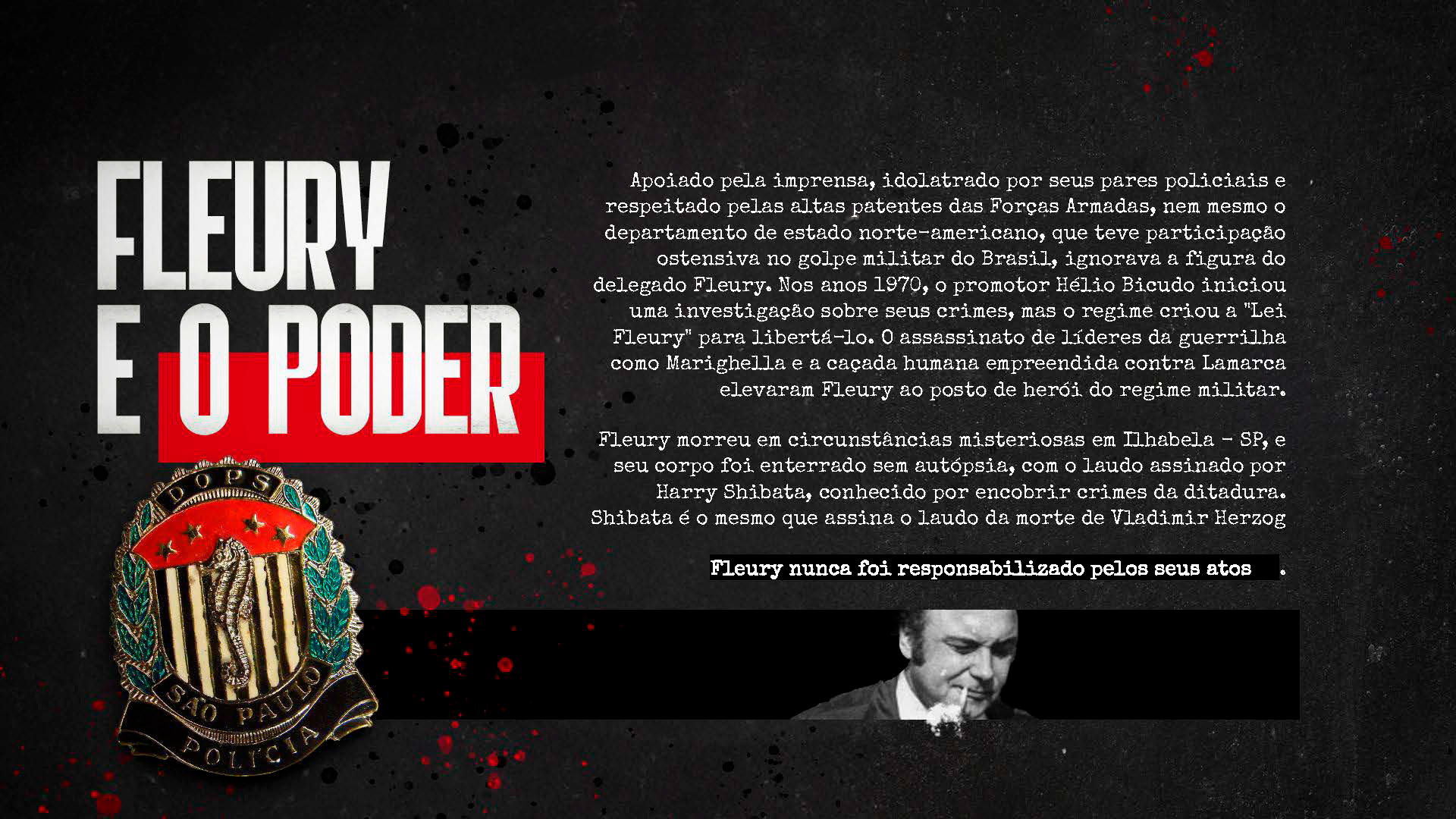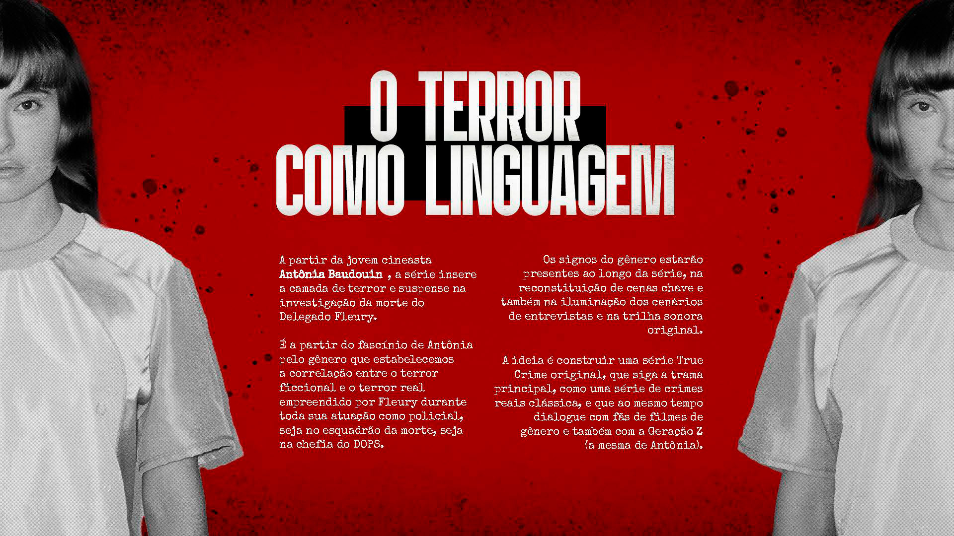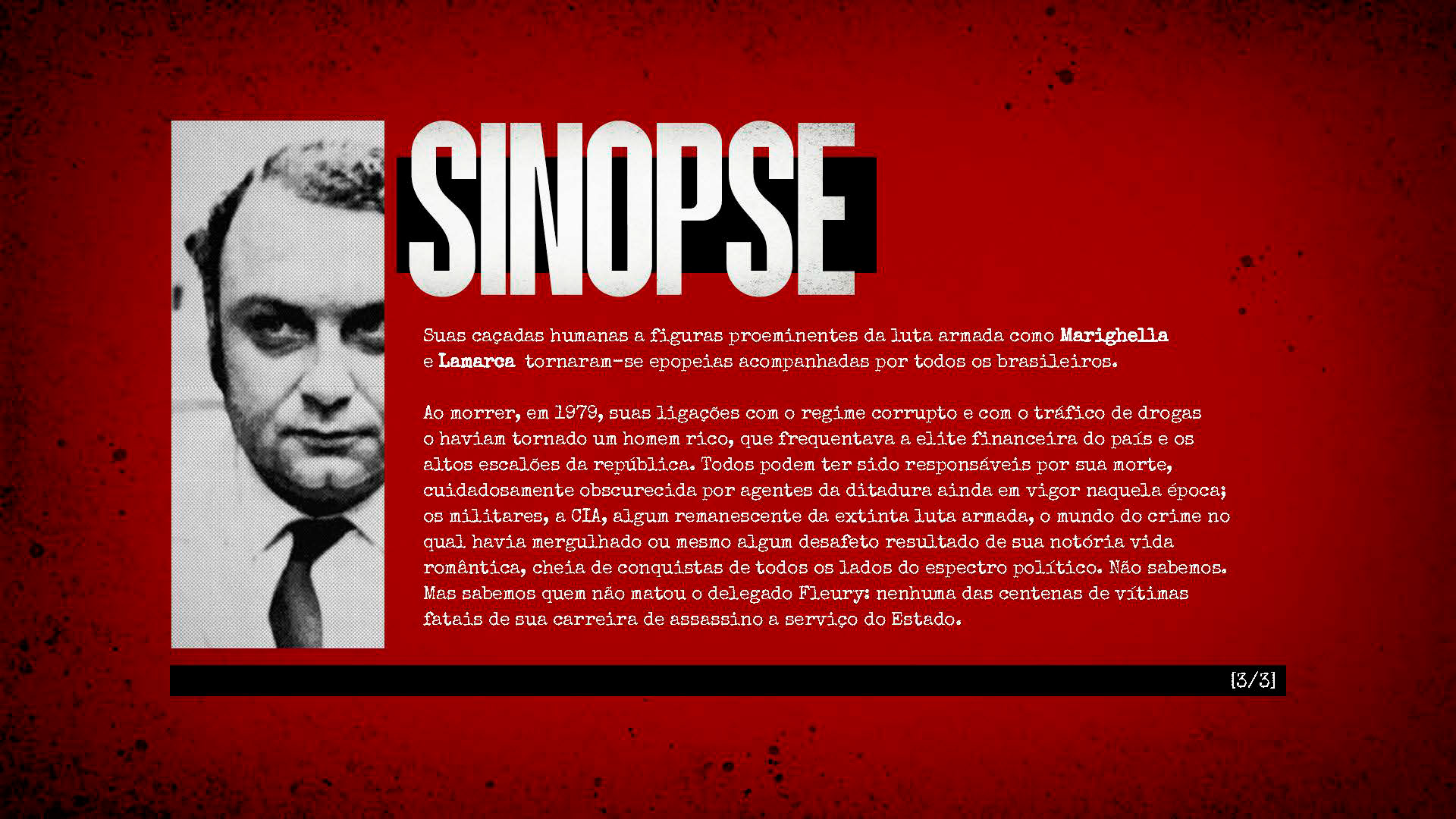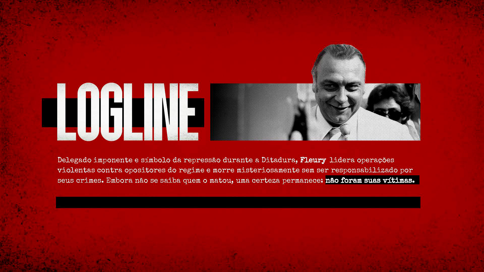 "QUEM Não matou o delegado fleury" (2025): key visual e apresentação de pitch com sinopse, episódios e argumentação criativa da série documental produzida pela produtora o par.